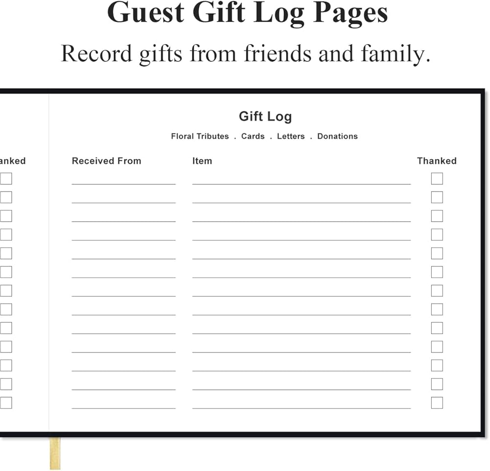 HIGH QUALITY - The memorial service guest book is used to high quality 120gsm pure white paper, 100 pages for guest entries, 4 pages to record gifts, and a family tree to add personal notes. A total of 60 sheets(120 pages), enough for you to log in all the visitors.