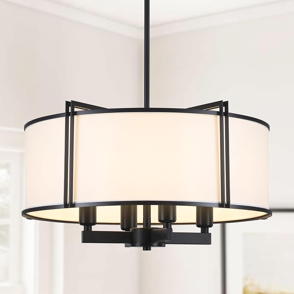 【 ثريا الطبل】يخلق الإطار المعدني الفريد وتصميم غطاء القماش الأبيض، وتأثيرات الإضاءة القديمة والناعمة، جوًا أنيقًا وبسيطًا. الثريا السوداء مقاس 19.6 بوصة مناسبة للتوافق مع أنواع مختلفة من الأثاث. الضوء كبير بما يكفي لإضاءة منزلك. يمكنك اختيار 2-3 مصابيح حسب منطقتك.