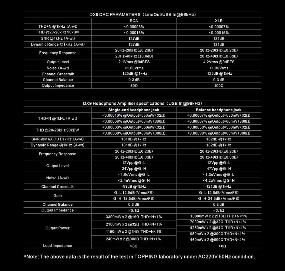 يتم تشغيل TOPPING DX9 بواسطة 𝐀𝐊𝟒𝟒𝟗𝟗𝐄𝐐 𝐃𝐀𝐂 𝐜𝐡𝐢𝐩 النادر والأسطوري، ويتميز بنطاق ديناميكي استثنائي يبلغ 132 ديسيبل وأقل من 0.00007% من التشوه التوافقي. مع أربع قنوات مستقلة، توفر دقة صوت ووضوح لا مثيل لهما لجلسات الاستماع الخاصة بك. تشبه شريحة DAC هذه وجود شريحتين رئيسيتين AK4499EX تعملان جنبًا إلى جنب، وعندما تقترن مع AK4118 - وهو حاليًا أقل جهاز استقبال S/PDIF - يوفر DX9 أداءً من الدرجة الأولى.