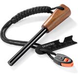 أداة النجاة من الحريق - مقبض خشبي مصنوع يدويًا قضيب فيرو سميك 3/8 بوصة مع حبل مهاجم ومظلة وقضيب حديد مقاوم للماء من الصوان ومجموعة أدوات إشعال النار من الفولاذ