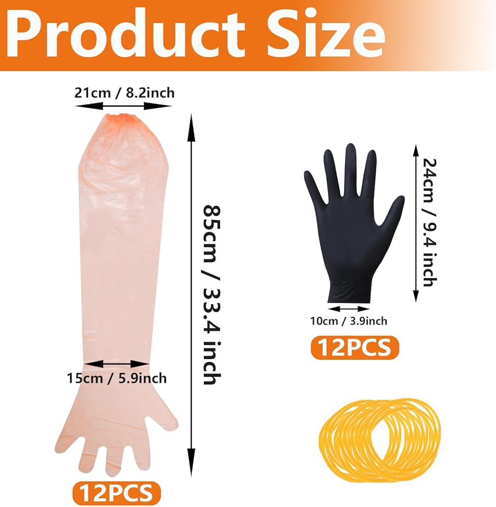 محتويات العبوة: تتضمن 6 أزواج من أكمام الذراع التي تستخدم لمرة واحدة (تأتي مع أشرطة مطاطية ثابتة) و6 أزواج من قفازات النتريل، بالإضافة إلى الأربطة المطاطية الصفراء لتأمين قفازات النتريل في مكانها.