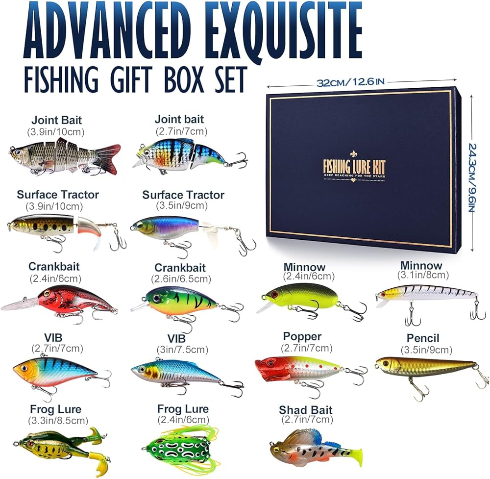 Introducing our Fishing Lures kit, the perfect gift for fishing lovers who enjoy freshwater and saltwater fishing. This set includes a variety of fishing lures and gear, designed to enhance your fishing experience and help you catch more fish.