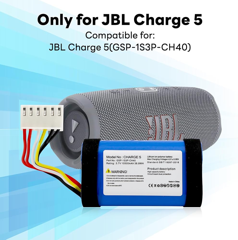 ✔️[متوافق تمامًا] ليثيوم أيون قابلة لإعادة الشحن لبطارية JBL Charge 5، متوافقة مع JBL Charge 5، رقم الجزء: GSP-1S3P-CH40.