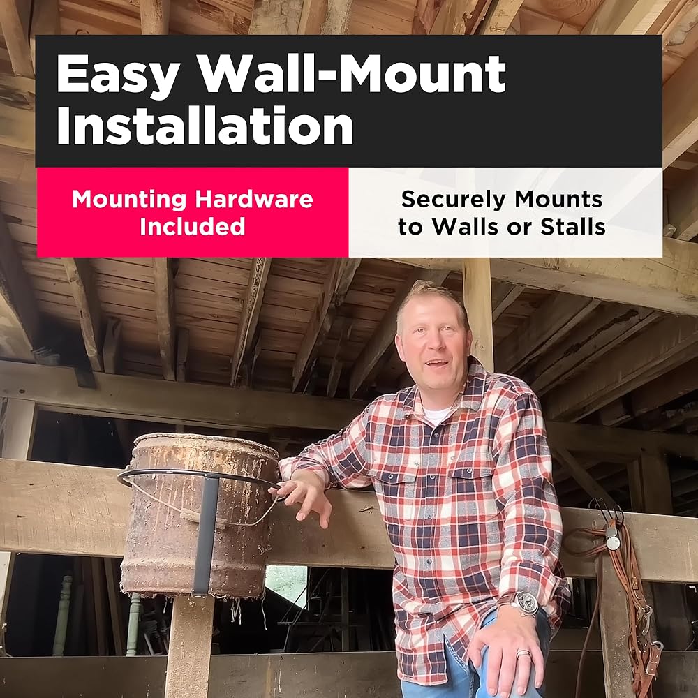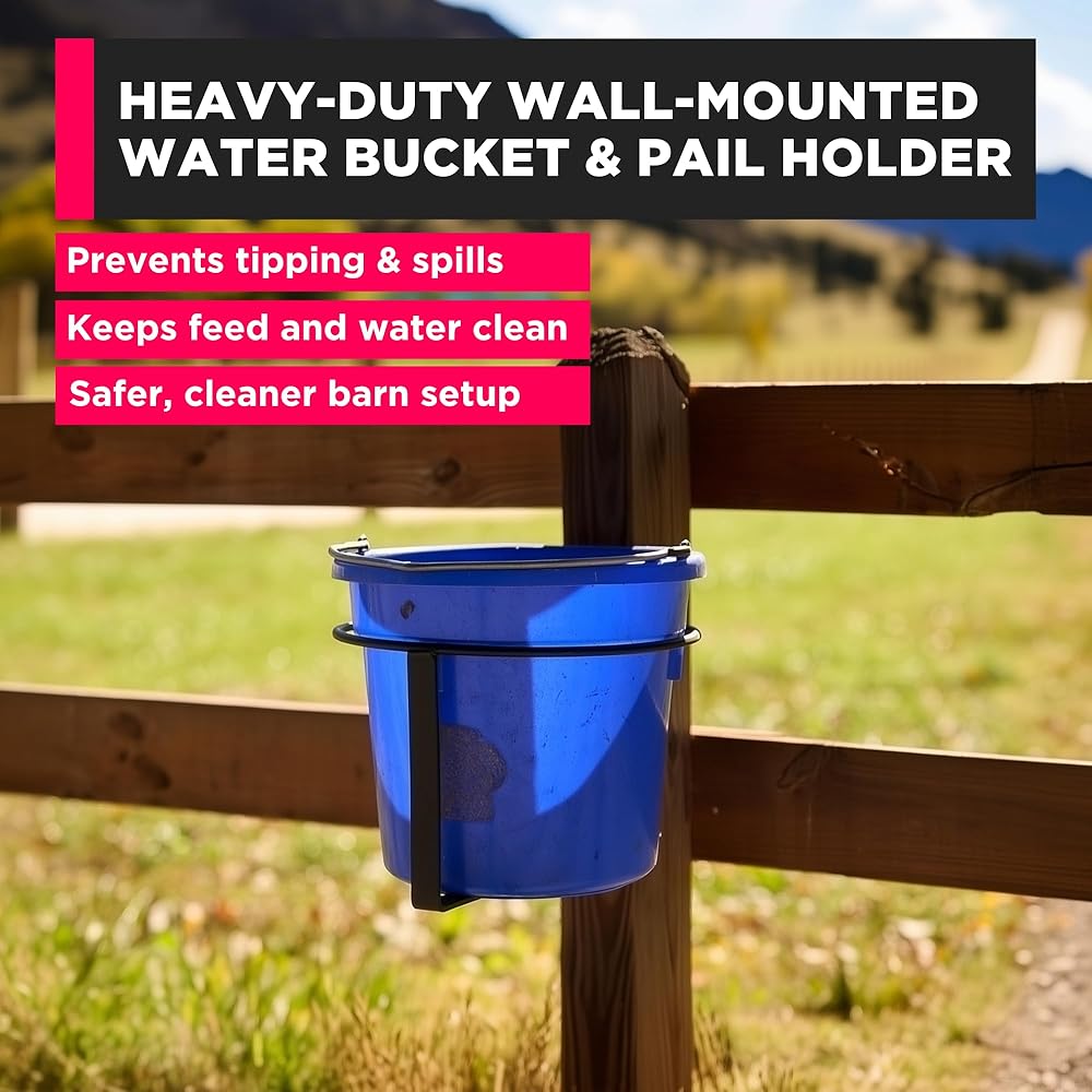 دلو مياه الماشية وحامل دلو من سينيك رود، قابل للحمل، مثبت على الحائط، مطلي بالمسحوق من الفولاذ