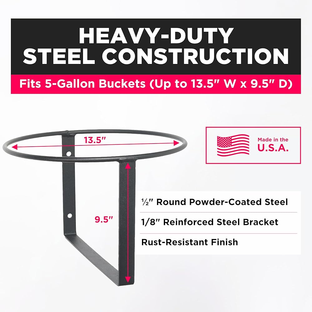 - مثبتة على الحائط - تحافظ على الدلاء والدلاء بعيدًا عن الأرض لمنع الانسكاب
