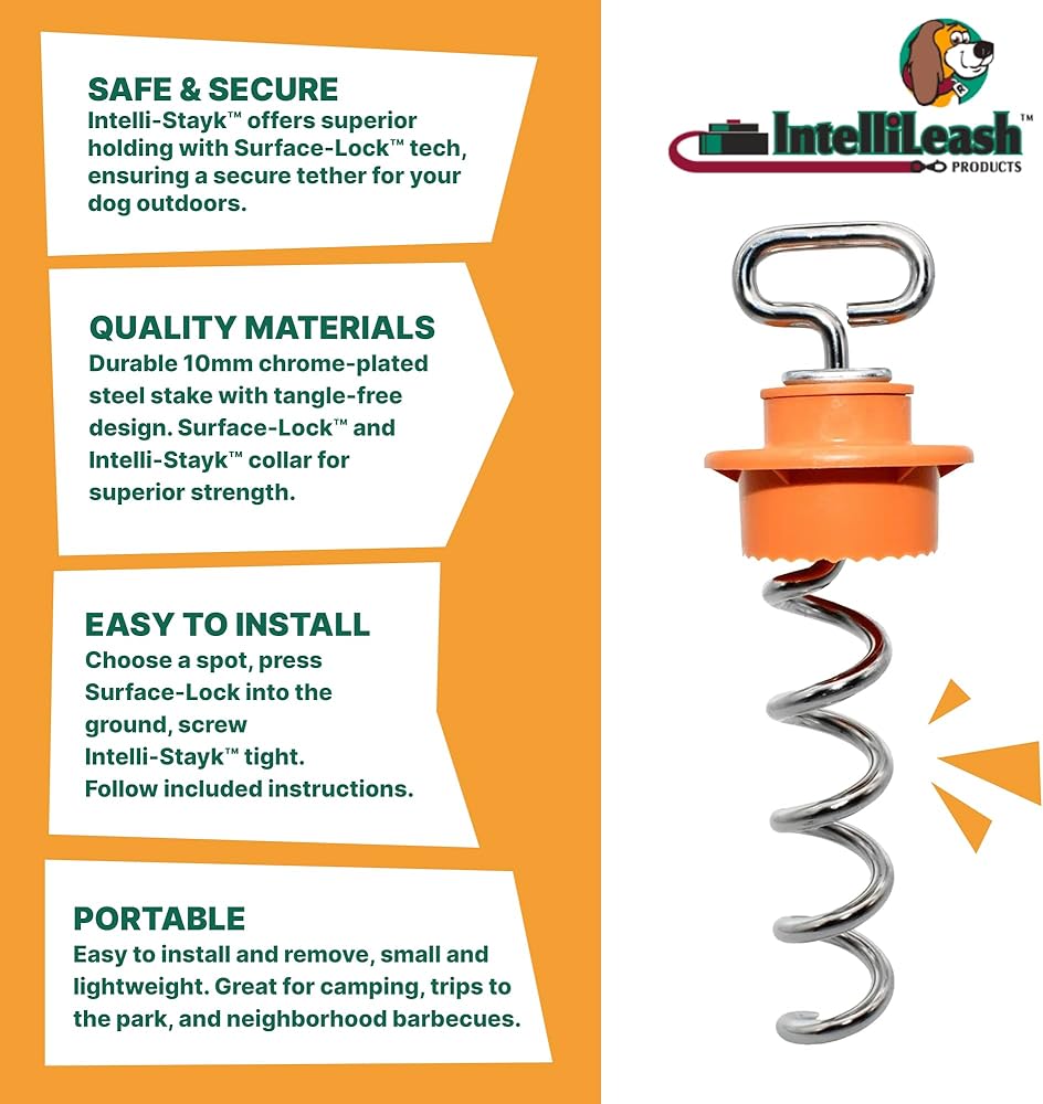 • مثالية للكلاب الكبيرة: تم تصميم IntelliLeash SecureStay Tie-Out Stake لتحمل السلالات الكبيرة التي يصل وزنها إلى أكثر من 200 رطل، مما يضمن بقاء حيوانك الأليف آمنًا.