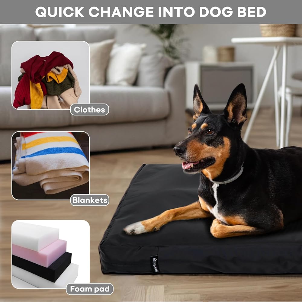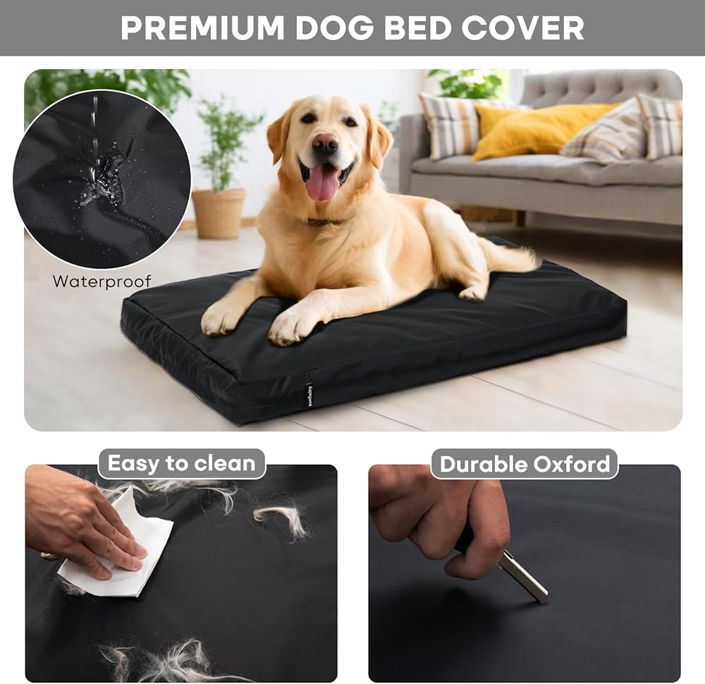 غطاء سرير كلب مقاوم للماء قابل للغسل، سهل التنظيف، مقاوم لشعر الحيوانات الأليفة، أكسفورد عالي التحمل، إغلاق بسحاب، للاستخدام الداخلي/الخارجي، يناسب قفص الكلاب مقاس 24 بوصة - صغير، 23 بوصة × 18 بوصة × 3 بوصة، أسود