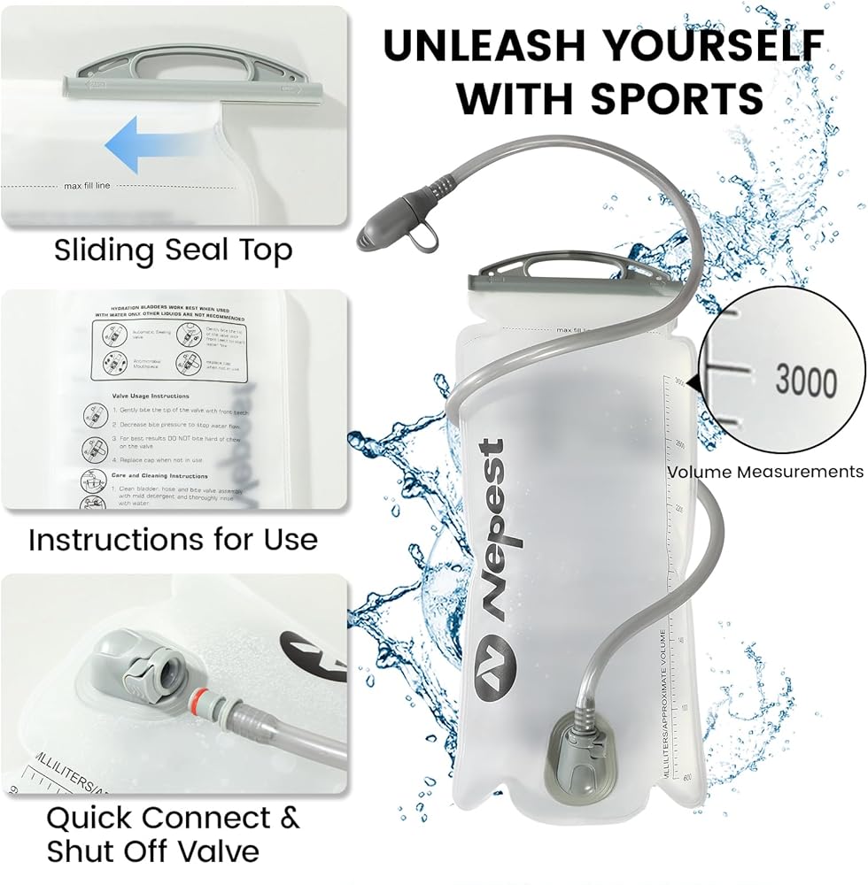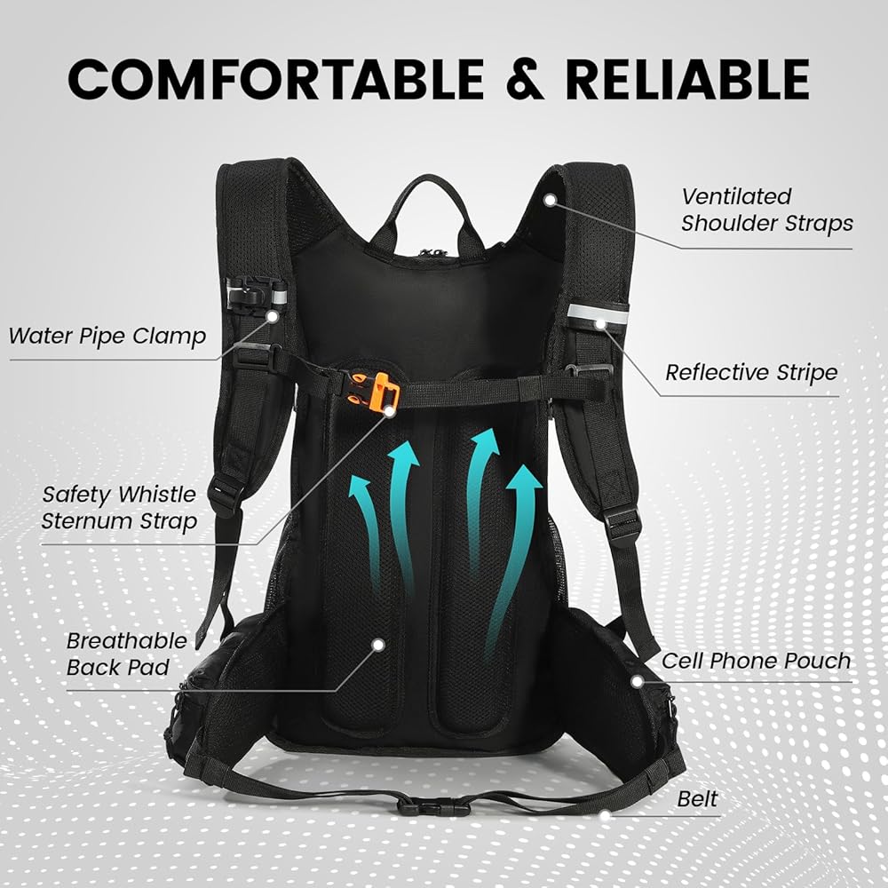 المثانة المائية المقاومة للتسرب سعة 3 لتر: يوجد في قلب حقيبة الظهر المرطبة هذه المثانة المائية المقاومة للتسرب سعة 3 لتر، المصممة لتبقيك رطبًا دون أي ضجة. تتميز بتصميم فتحة كبيرة، مما يجعل ملء المثانة وتنظيفها أسهل من أي وقت مضى. وبفضل بنيتها القوية المقاومة للتسرب، يمكنك توديع انسكابات المياه غير المتوقعة