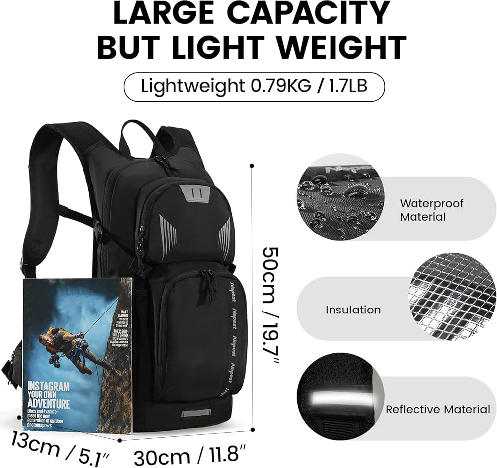 إعادة تعريف التنوع: سواء كنت من عشاق المشي لمسافات طويلة، أو من عشاق ركوب الدراجات، أو رائدًا في التزلج، فإن حزمة الترطيب هذه تتكيف مع جميع احتياجاتك. إنها حقيبة الظهر المائية المثالية لأولئك الذين يرفضون أن يقتصروا على رياضة أو تضاريس واحدة. إن تصميمه المريح والعديد من الميزات يجعله رفيقًا لركوب الدراجات متعدد الاستخدامات مثل شغفك بالمغامرة
