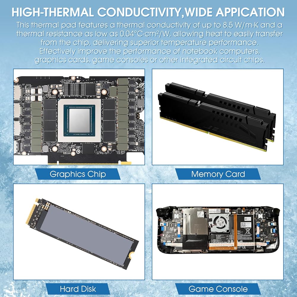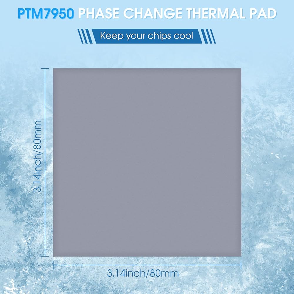 【المواصفات: يبلغ قياس PTM7950 80 × 40 × 0.2 مم مع موصلية حرارية تبلغ 8.5 وات/م.ك، وهي مصممة لتغيير المرحلة وتعزيز أداء المبدد الحراري.