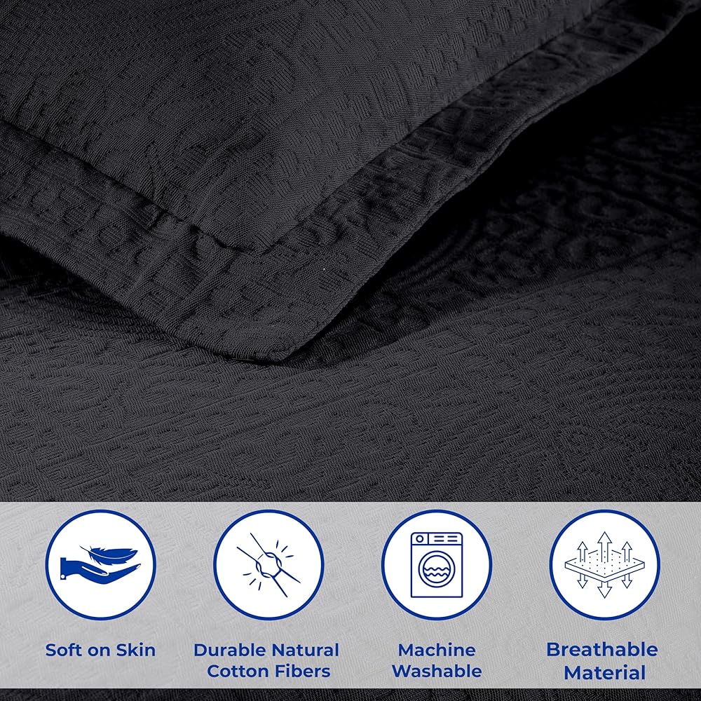 𝐀𝐋𝐋-𝐒𝐄𝐀𝐒𝐎𝐍 𝐂𝐎𝐌𝐅𝐎𝐑𝐓: Made from 100% Cotton, this bedspread is breathable while providing warmth and comfort; serves as a decorative accent or an added layer on colder nights; Set Includes 1 Bedspread (120" x 102") and 2 Pillow Shams (36" x 20")