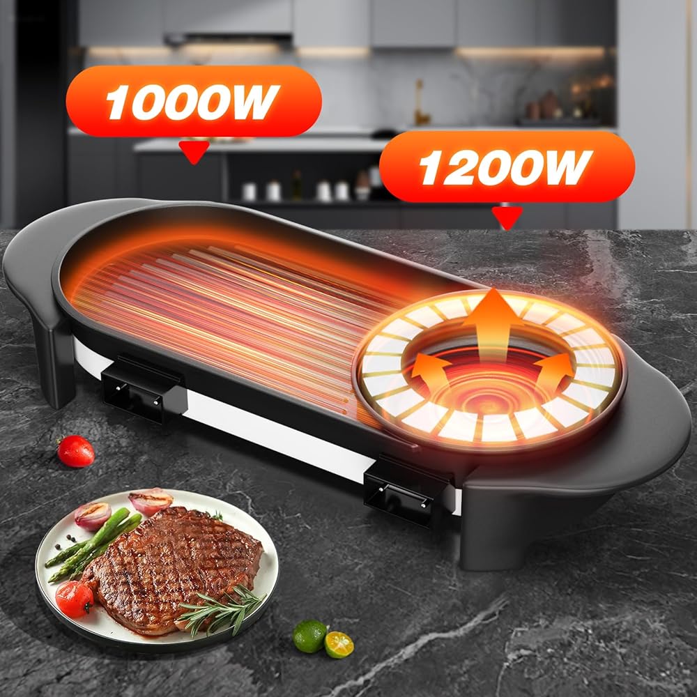 • مواد عالية الجودة: شواية الشواء الكورية الخاصة بنا مصنوعة من سبائك الألومنيوم السميكة مع طلاء غير لاصق صالح للطعام على السطح، مما يجعل الطبخ والتنظيف سهلاً للغاية. يتيح لك تصميم الغطاء الزجاجي المقسّى مراقبة الوضع في الوعاء أثناء عملية الطهي