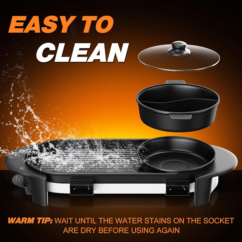 • تصميم مريح: مقبض مادة ABS للغطاء الزجاجي يمنع الحروق؛ جهاز تسرب الزيت المستقل مناسب لترشيح الزيت وتنظيفه. إن وعاء التسخين القابل للفصل مع المقسم لا يسهل عملية التنظيف فحسب، بل يوفر أيضًا منطقة طهي مستقلة؛ صينية الخبز مقاومة للتدخين وغير قابلة للالتصاق، مما يجعلها مناسبة للاستخدام والتنظيف الداخلي