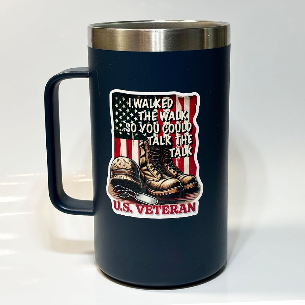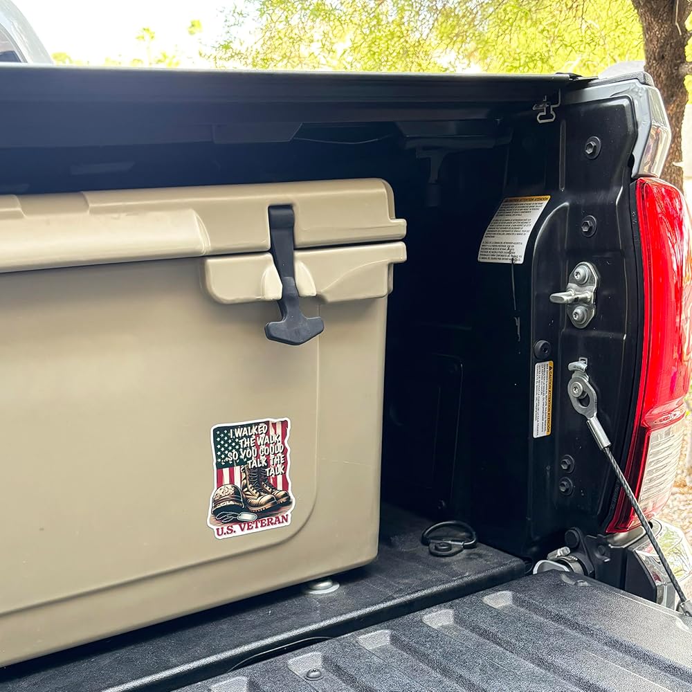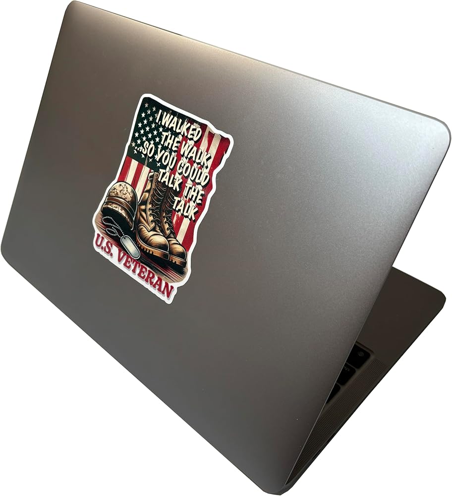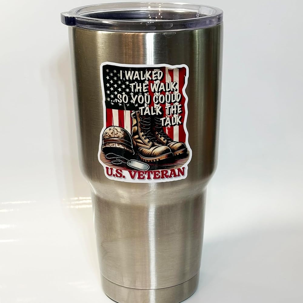 Tactical Decals - I Walked The Walk So You Could Talk The Talk stickers. These are a great way to show support, pride, and respect for our Veterans. These are perfect for any branch of USA Military - army, Navy, Airforce, or Marines. These are printed on high quality vinyl and UV laminated to add extra scratch, fade, and waterproof protection. Each order includes one 4.5" and one 3" Application is an easy peel and stick to any clean smooth surface.