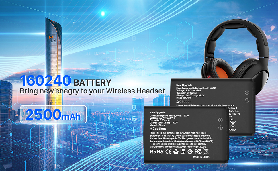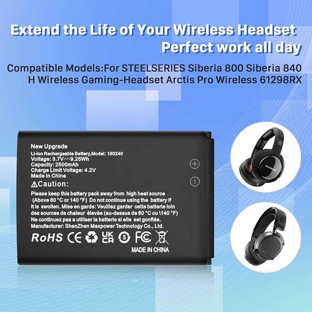 🎶【نموذج متوافق】: هذه البطارية البديلة 160240 لسماعات الألعاب اللاسلكية Steelseries Arctis Pro Wireless وSiberia 800 وSiberia 840 وسماعات 61298RX وبطارية سماعة الألعاب اللاسلكية H.