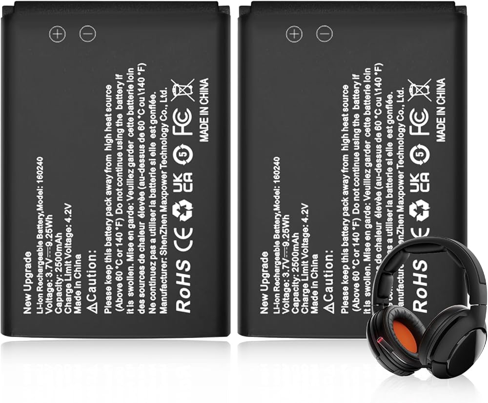 (عبوتان) بطارية 160240، بطارية بديلة ليثيوم أيون عالية السعة 2500 مللي أمبير في الساعة لـ Steelseries Arctis Pro Wireless، Siberia 800، Siberia 840، سماعات الألعاب اللاسلكية، بطارية سماعات 61298RX