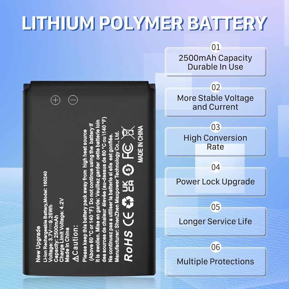 🎶【ضمان الجودة العالية】: البطارية البديلة 160240 الخاصة بنا حاصلة على شهادة UL وCE وRohs، وتستخدم خلايا بطارية مصنفة من الدرجة A+. يتم تصنيع كل بطارية واختبارها وفقًا لمعايير مراقبة الجودة الصارمة. رقاقة مدمجة لمنع الشحن الزائد، والتفريغ الزائد، وقصر الدائرة، والسخونة الزائدة. حماية متعددة لتشغيل أكثر أمانًا لكل من المستخدم والأجهزة.