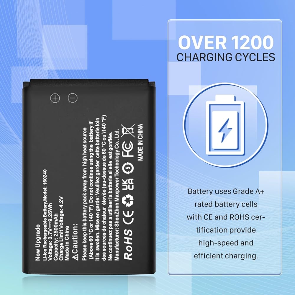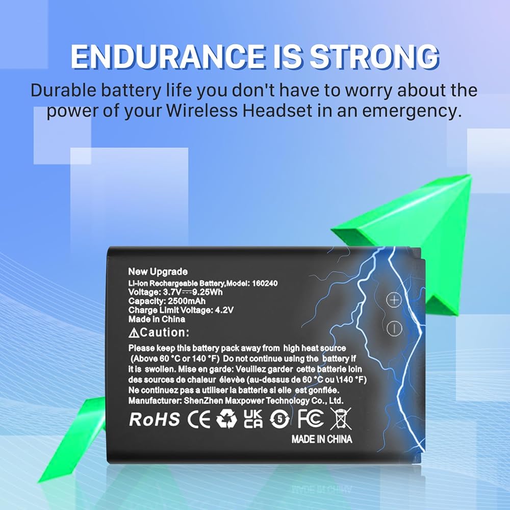 🎶【عمر بطارية طويل】: هذه البطارية البديلة ذات السعة العالية 160240، نوع البطارية: ليثيوم أيون، سعة البطارية: 2500 مللي أمبير، واط/ساعة: 9.25 وات في الساعة، خرج الجهد الكهربائي: 3.7 فولت. دورة 0 جديدة تمامًا، مصممة لتدوم ما يصل إلى 1200 دورة شحن لتوفير عمر بطارية أطول. أعد عمر بطارية سماعة الرأس Steelseries Arctis Pro إلى المجد.