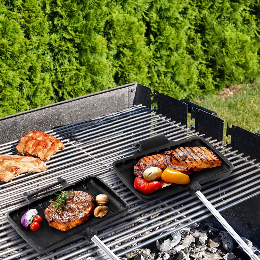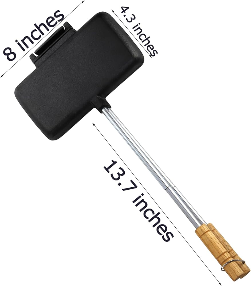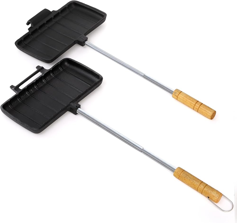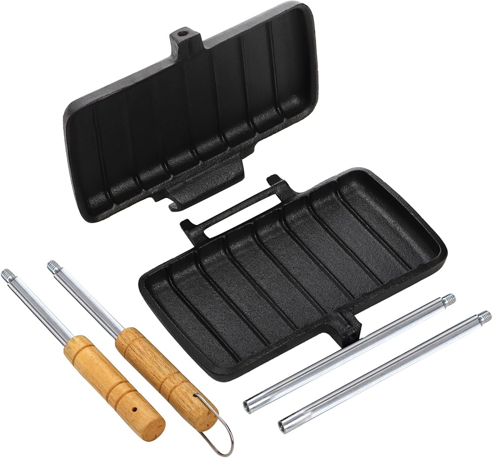حديد الزهر: مصنوع من حديد الزهر المتين، صُمم صانع شطائر نار المخيم ليتحمل درجات الحرارة العالية والاستخدام القاسي في الهواء الطلق. صانعة الساندويتشات غير لاصقة وسهلة التنظيف ومريحة ومناسبة للاستخدام طويل الأمد.