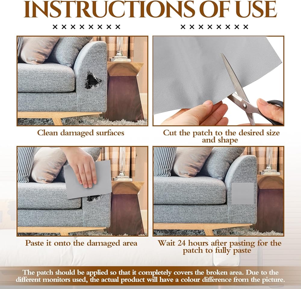 رقع قماشية ذاتية اللصق: رقعة إصلاح القماش ذاتية اللصق مقاس 15.7 × 79 بوصة مصنوعة من مادة القماش، لا تلبي وظائف الطريقة فحسب، بل تتميز أيضًا بخصائص النعومة والراحة ومقاومة التآكل ومقاومة الخدش والمتانة؛ سُمك الرقعة 1.2 مم، وهو متوسط ومرن، حتى إذا خدش حيوانك الأليف الأثاث، فلا داعي للقلق، فقط استخدم الرقعة وسيكون المنتج جيدًا.