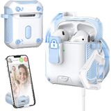 لغطاء حالة AirPods 2nd/1st ، متوافق مع Magsafe ، القفل التلقائي المغناطيسي ، شحن ميناء مقاوم للواحد وتصميم الوقوف مع طقم التنظيف ، الأسود/الأبيض