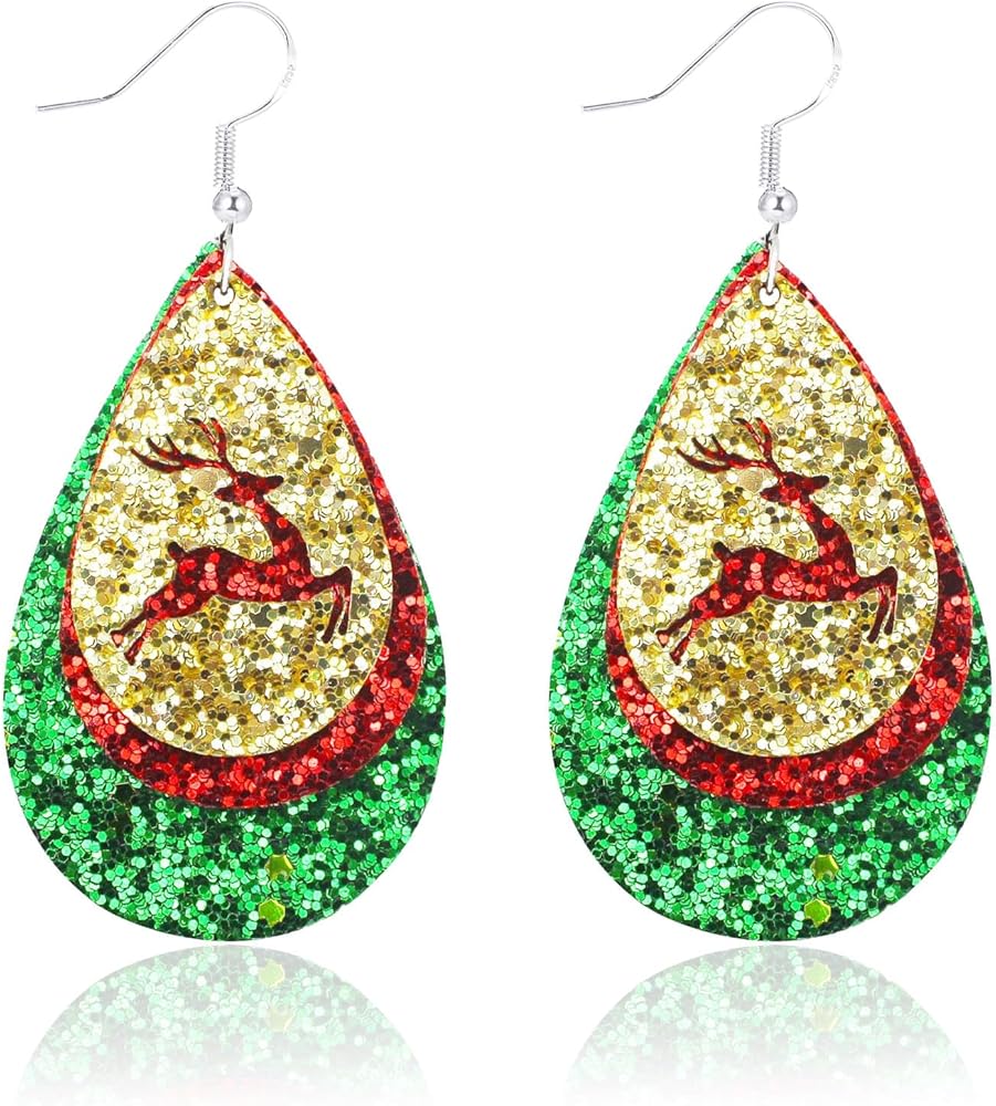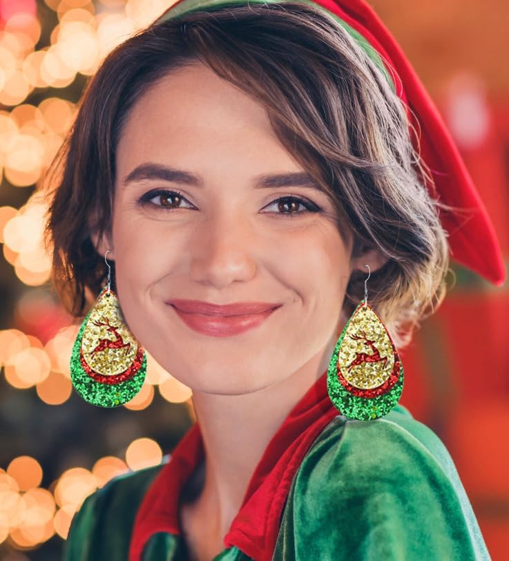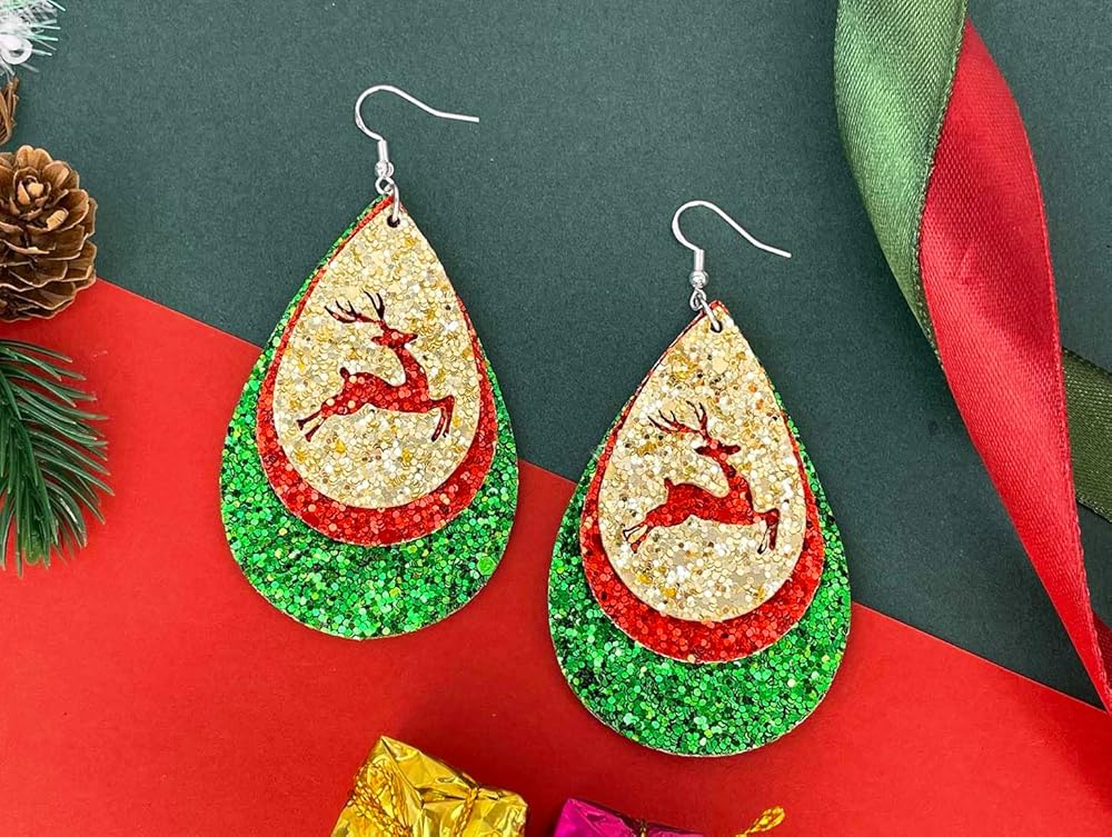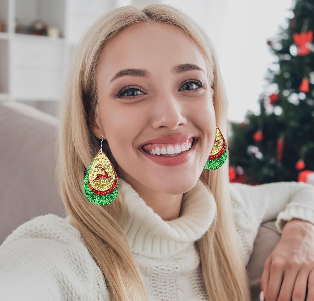 2024 Glitter Leather Christmas Earrings for Women Teens