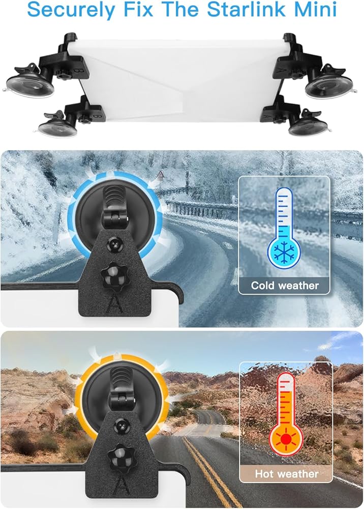Long-lasting and stable: The tow suction cups are strongly adsorbed, and these brackets can firmly fix the Starlink Mini to prevent sliding or falling off, and can remain stable even in the sun.