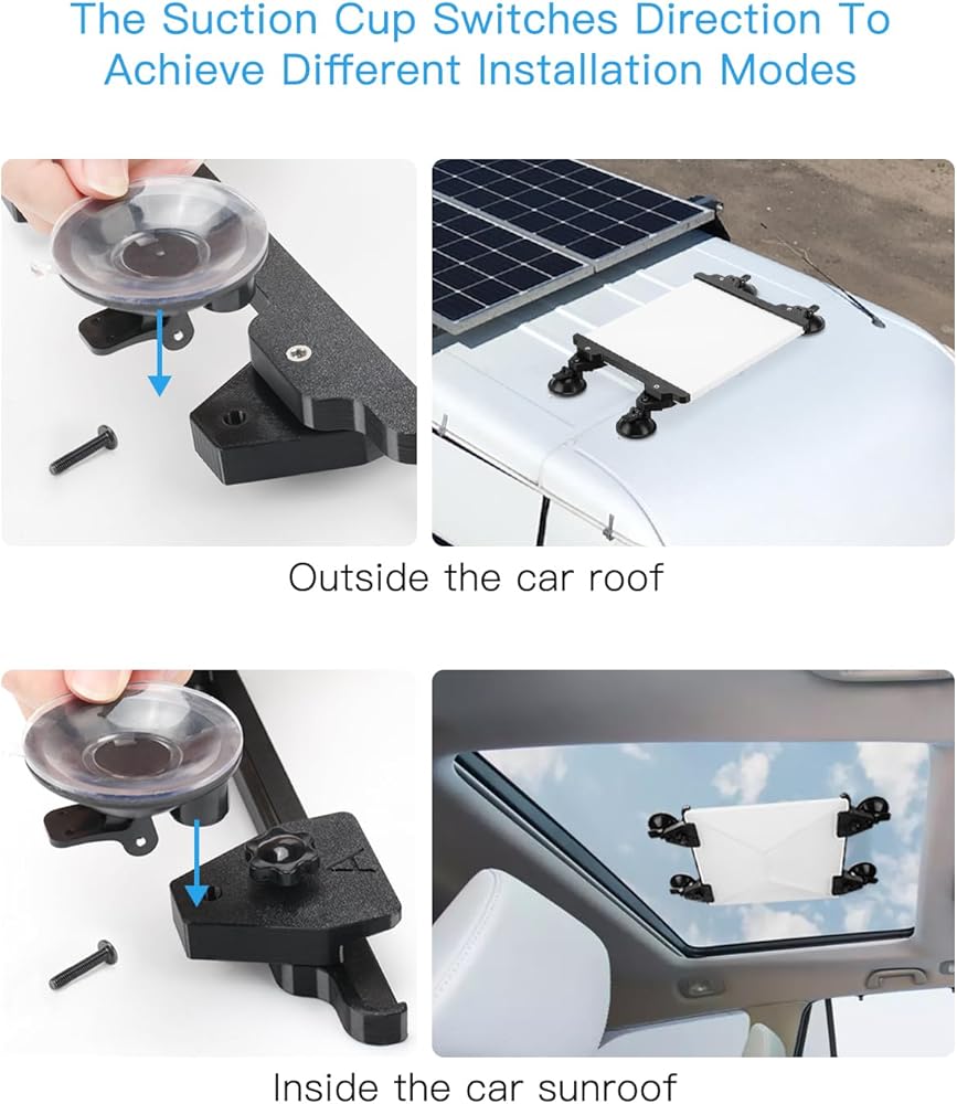 Suction cup switching direction: Switching the suction cup direction means that the bracket can be installed in different modes between the sunroof inside the car and the roof outside the car.