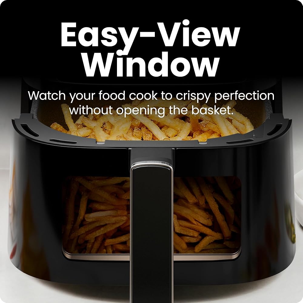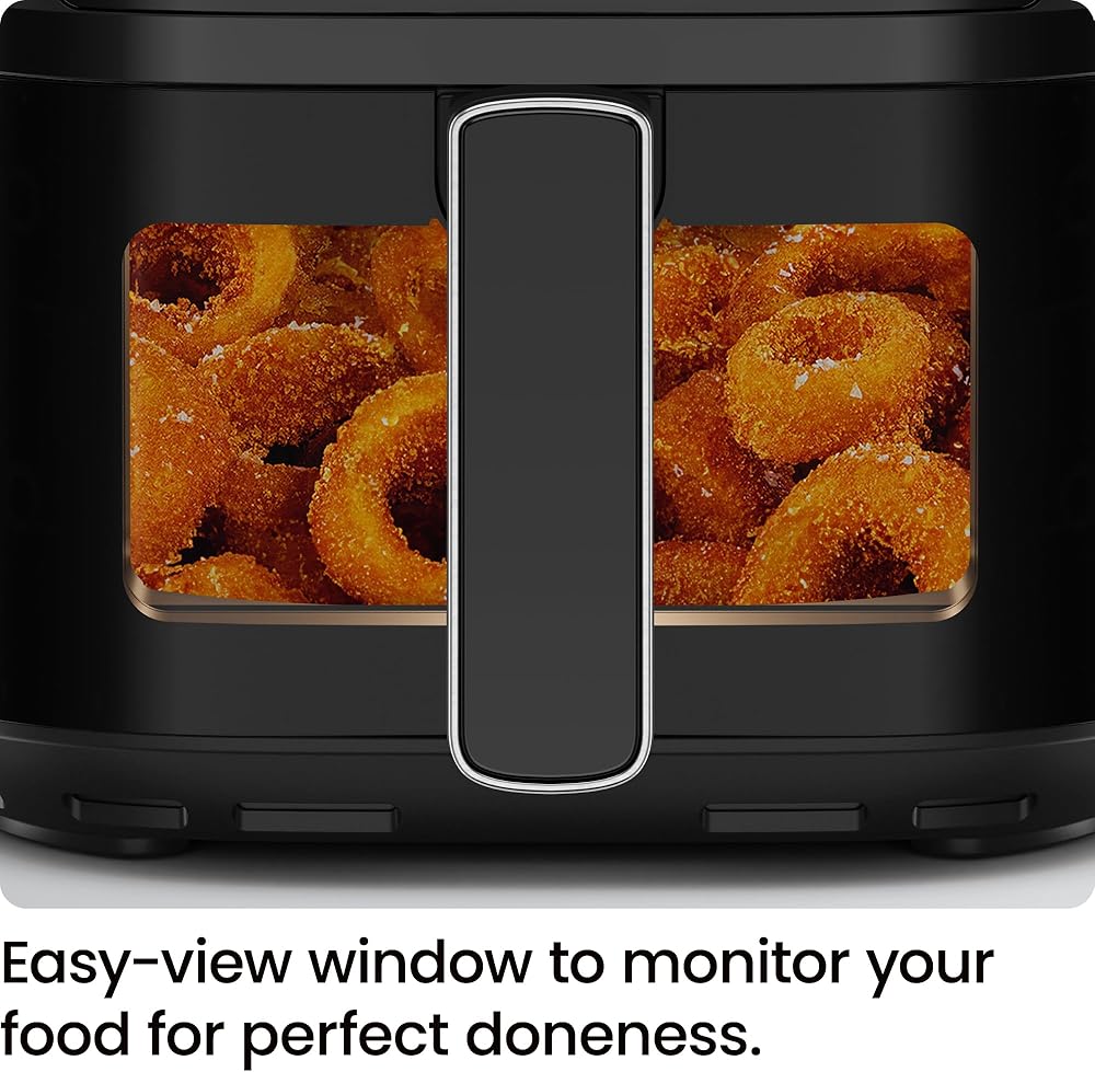 EASY-VIEW WINDOW: Watch your food fry to your ideal finish. The integrated cooking window on the basket ensures that you can see just how crispy your food gets with only a fraction of the cooking oil.