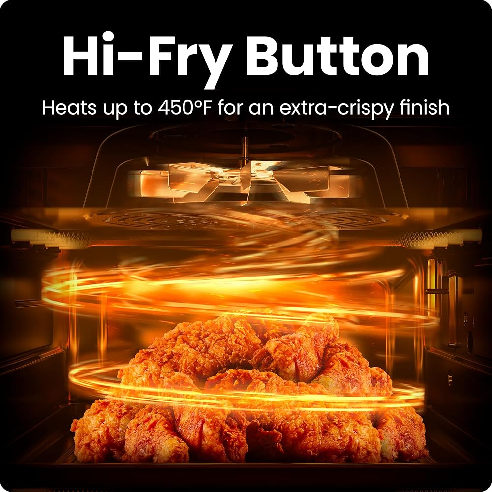 450°F HI-FRY TECHNOLOGY: Achieve the perfect finishing crunch on your air-fried favorites. Increase the heat to 450°F during the final two minutes of cooking: ideal for extra-crispy chicken tenders and French fries.