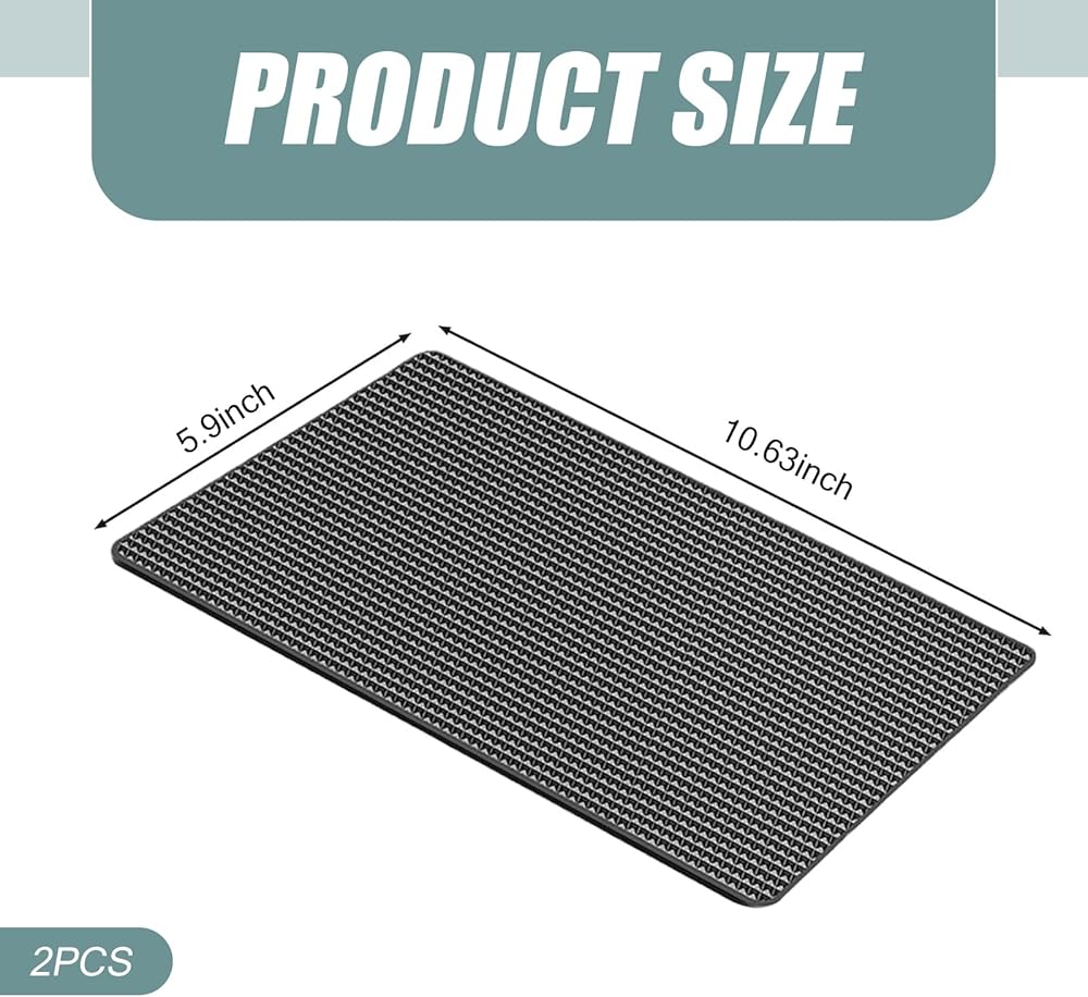 Gseigvee Pack-2 Car Dashboard Anti-slip Mat, 10.6" x 5.9" High Temperature Resistant Washable Storage Pad for Mobile Phone Keys, Super Strong Adsorption Self-adhesive Mat, Universal for Cars (Black)