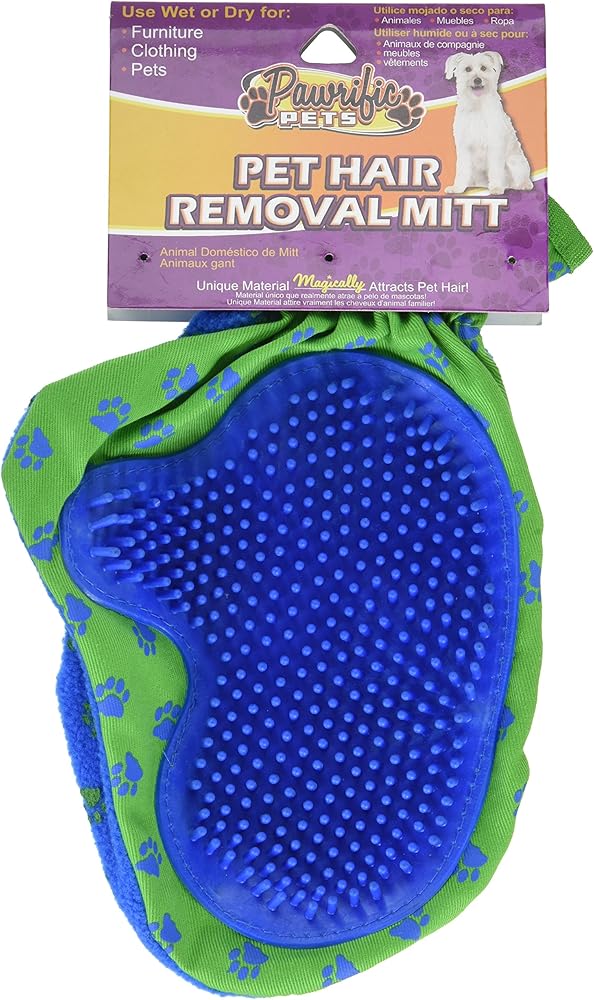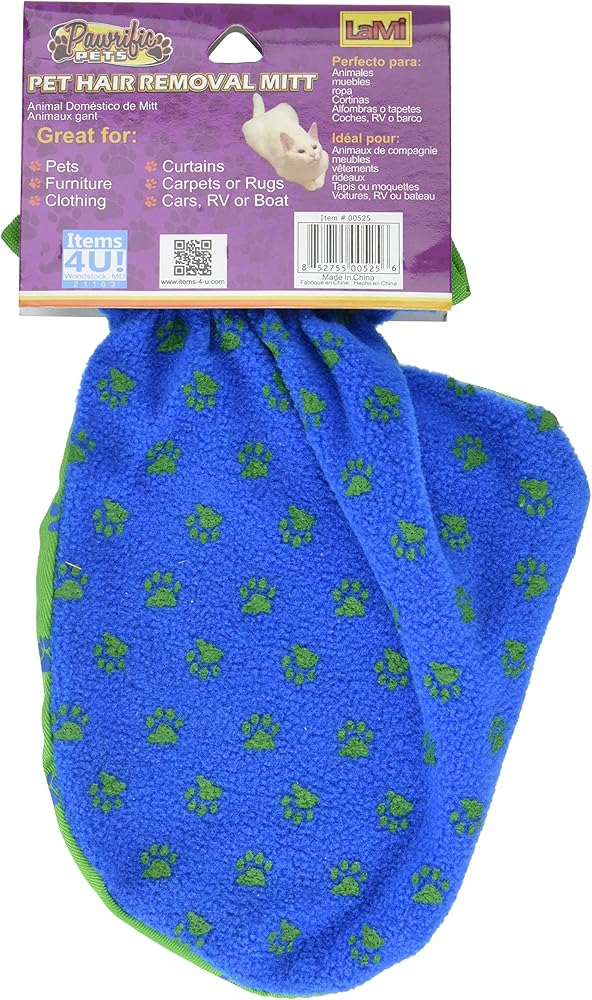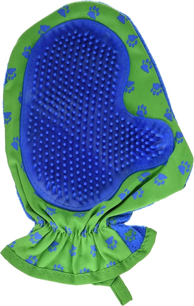 العناصر 4 u 00525 قفاز إزالة الشعر، أزرق/أخضر؛ تحب الحيوانات الأليفة أن يتم تنظيفها بهذا المنتج؛ من السهل إزالة الشعر من الفرشاة.