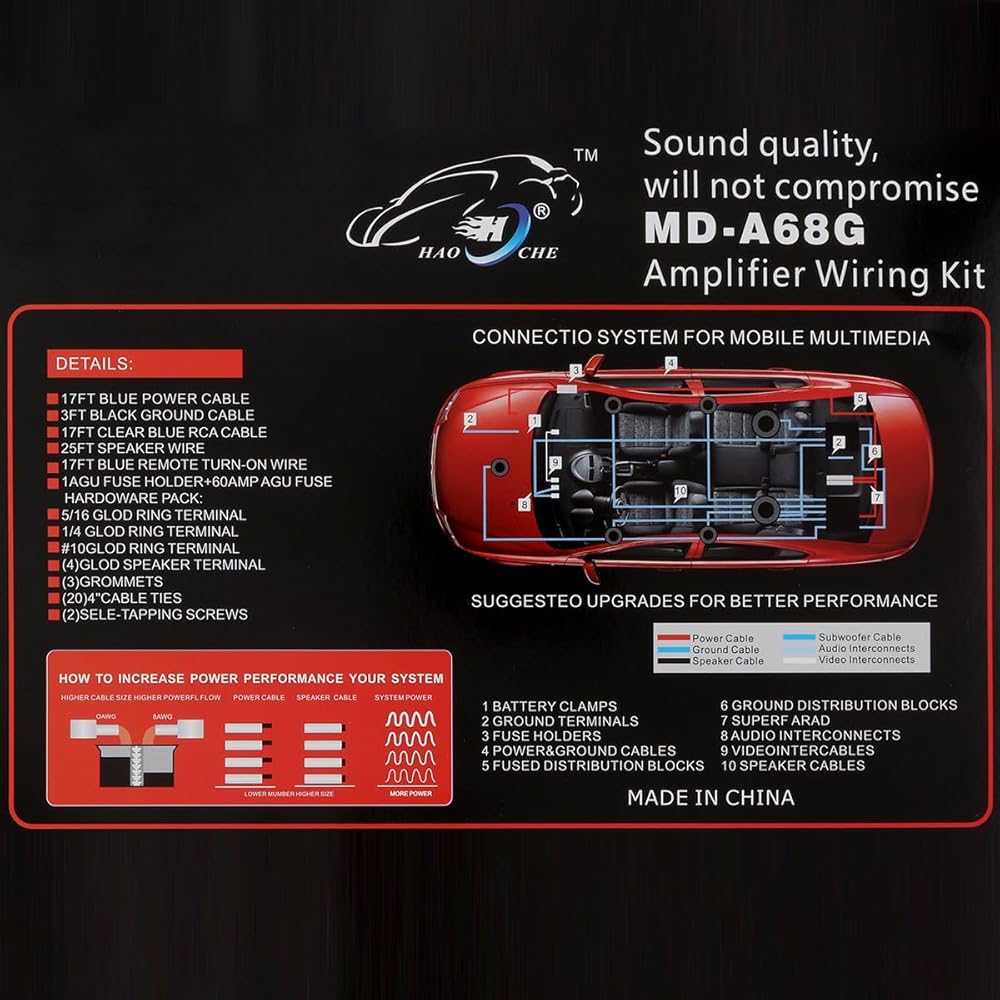 - 4 Gauge amp kit amplifier install flexible wiring.