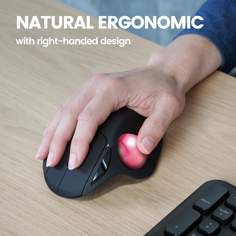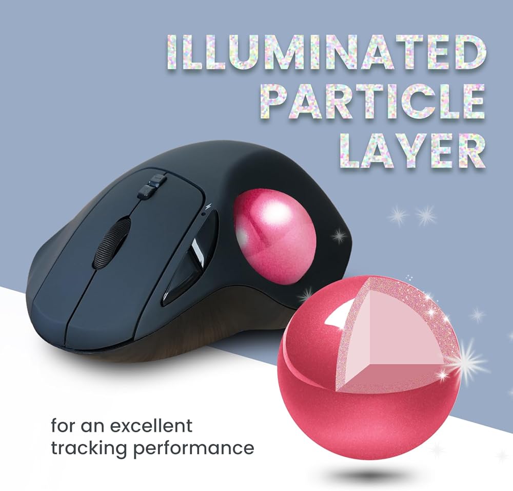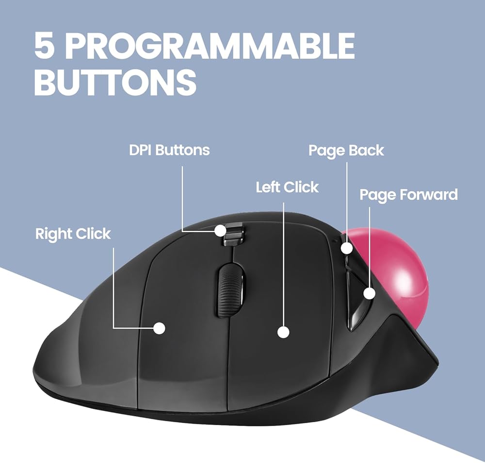 • WIRELESS TRACKBALL - wireless ergonomic trackball mouse with 2.4 GHz connection, 5 programmable buttons, and easy to switch the cursor speed with DPI switch buttons