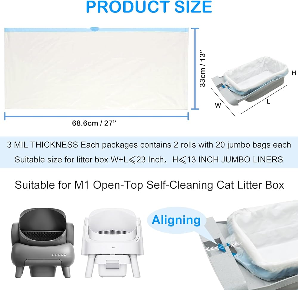 • 40 بطانة لصندوق الفضلات - احصل على 20 بطانة عالية الجودة في كل لفة. يبلغ مقاسها 27.1 بوصة × 12.9 بوصة، وهي مناسبة لمعظم صناديق الفضلات، وتوفر تغطية كبيرة لصناديق فضلات القطط الروبوتية الخاصة بك.