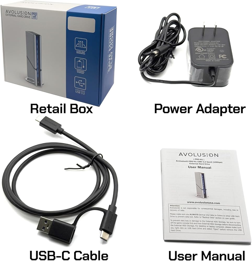Avolusion PRO-H1 Series 3TB External Hard Drive is the value hard drive upgrade kit provides the best and easy solution to expand your Desktop PC, Laptop, (Windows , MacOS) or XBOX Game console. (HDD Re-format required) USB 3.2 Gen 2 (10Gbps) port to expand your device capacity instantly! Plug and Play USB 3.2 Gen 2 interface (backward compatible USB 3.0) providing a perfect portable storage solution for you to store & backup your game data, music, picture, video and more! Avolusion PRO-H1 Series External Hard Drive designed to work with your Windows OS Desktop PC, Laptop, PS & XBOX Game console perfectly! It comes with silent fan-less design to keep your External Hard Drive operate quietly!