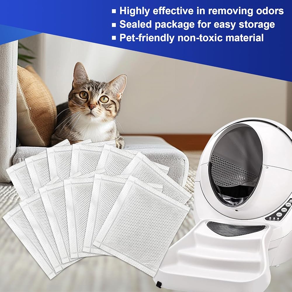 12 قطعة مزيل الروائح الكريهة لفضلات القطط، مزيل رائحة فضلات القطط مع شريط مزدوج الجوانب متوافق مع روبوت الفضلات 3، روبوت الفضلات 4 وصندوق فضلات القطط التقليدي لامتصاص الروائح والحفاظ على الهواء منتعشًا