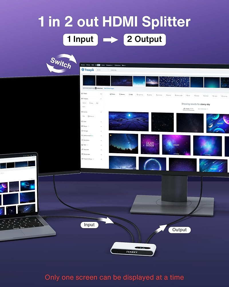 محول HDMI 4K@120 هرتز iVANKY ثنائي الاتجاه 8K HDMI 2.1 مع جهاز تحكم عن بعد 2 في 1 مخرج، 1 في 2 مخرج (شاشة واحدة في كل مرة) HDR 3D 8K@60 هرتز لسلسلة Xbox، PS5/PS4/PS3، Roku، Apple TV ، الكمبيوتر الشخصي، فاير ستيك