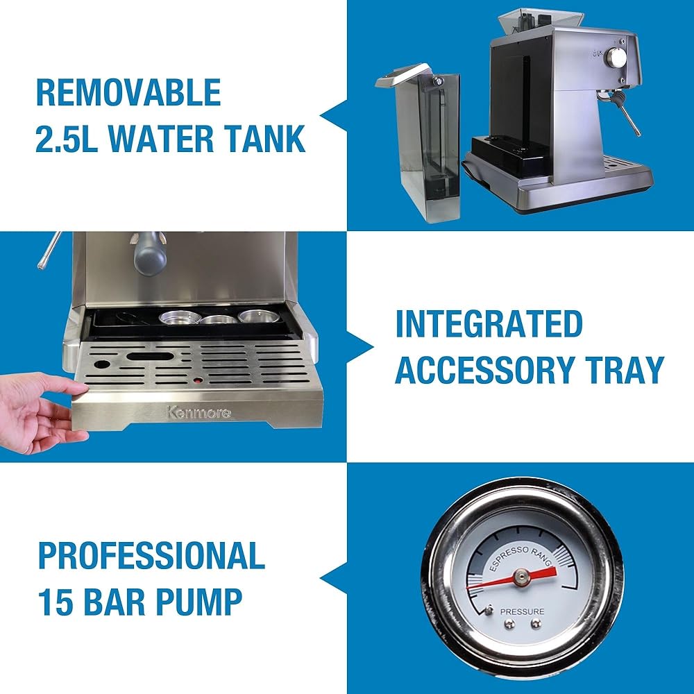طحن التحكم في الجرعة: توفر المطحنة المخروطية المدمجة مع إعدادات الطحن القابلة للتعديل الكمية المثالية من القهوة المطحونة الطازجة في سلة الفلتر المفردة أو المزدوجة بلمسة زر واحدة.