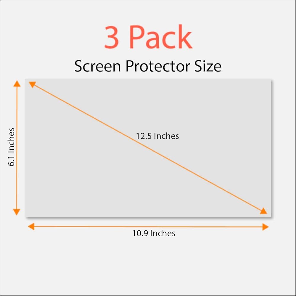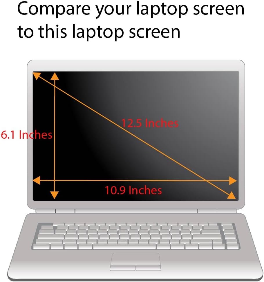 أبعاد واقي الشاشة الفعلية هي 12.5 بوصة مقاسة قطريًا. 10.9 بوصة عرض × 6.1 بوصة ارتفاع. يرجى مقارنة شاشتك بصورة القياس الخاصة بنا قبل الشراء.