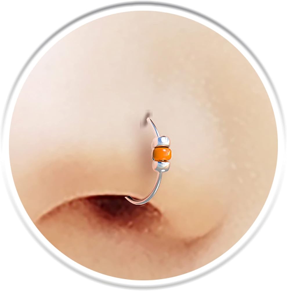 ♡ Lightweight Clip On Nose Hoop, Comfortable Fake Nose Ring, Dainty Artificial Nose Hoop With Beads.