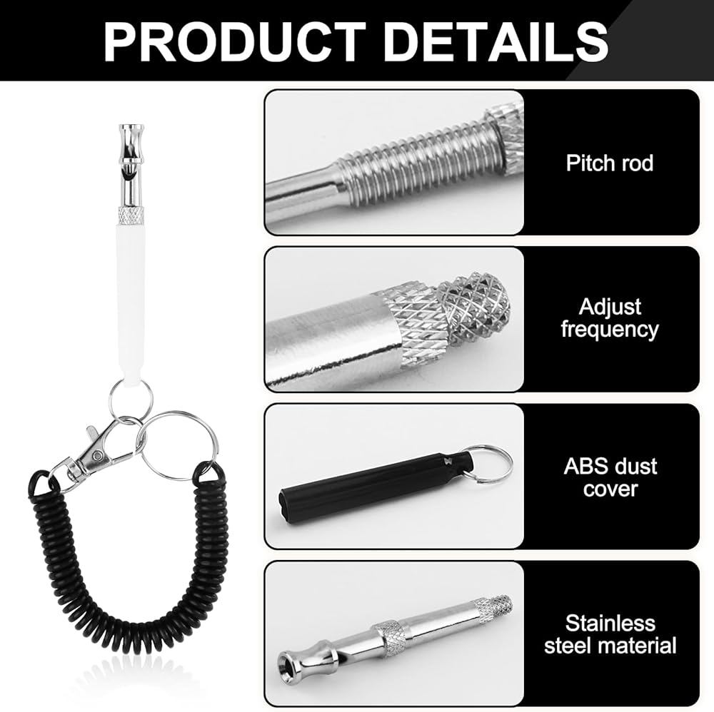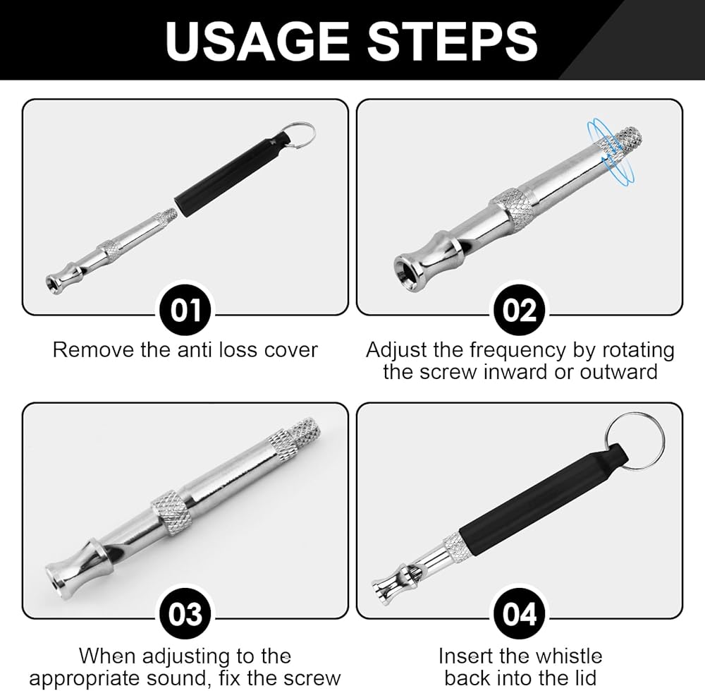 【Adjusable Frequencies】Our dog training whistle has a nut and screw that would adjust the frequency when turned. The sound frequency can be adjusted by rotating to find the right frequency for your dogs.