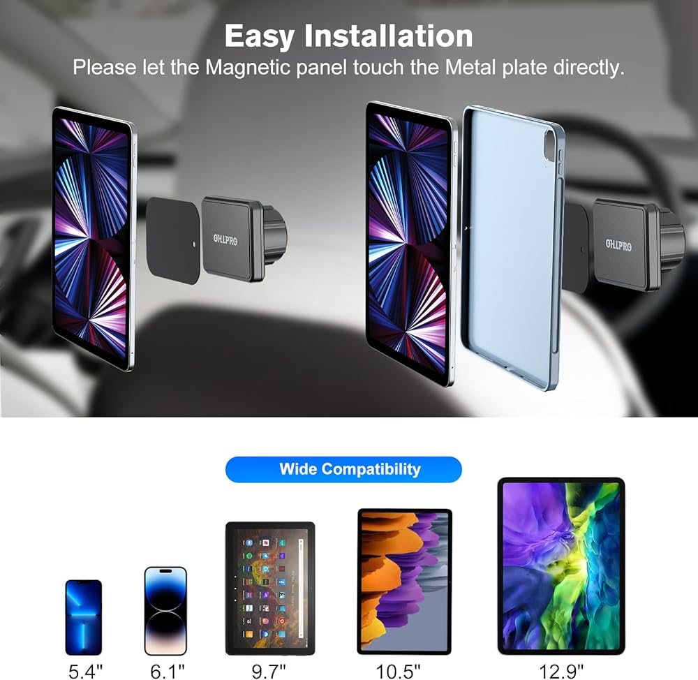 Wide Compatibility: The headrest magnetic tablet holder is designed specifically for the 2016-2023 Tesla Model 3, 2020-2024 Model Y, and 2021-2024 Model S&Model X. Suitable for all iPads, tablets, and phones.