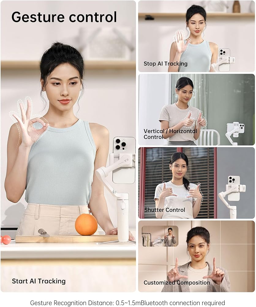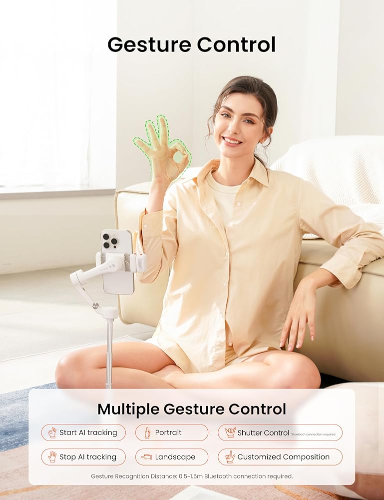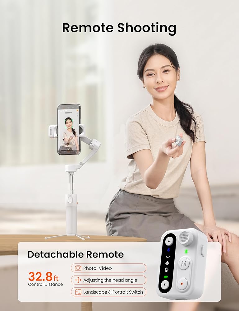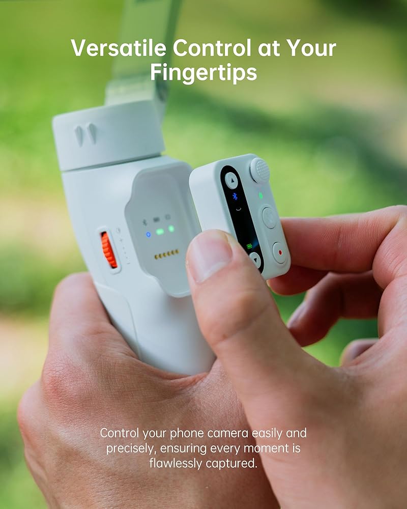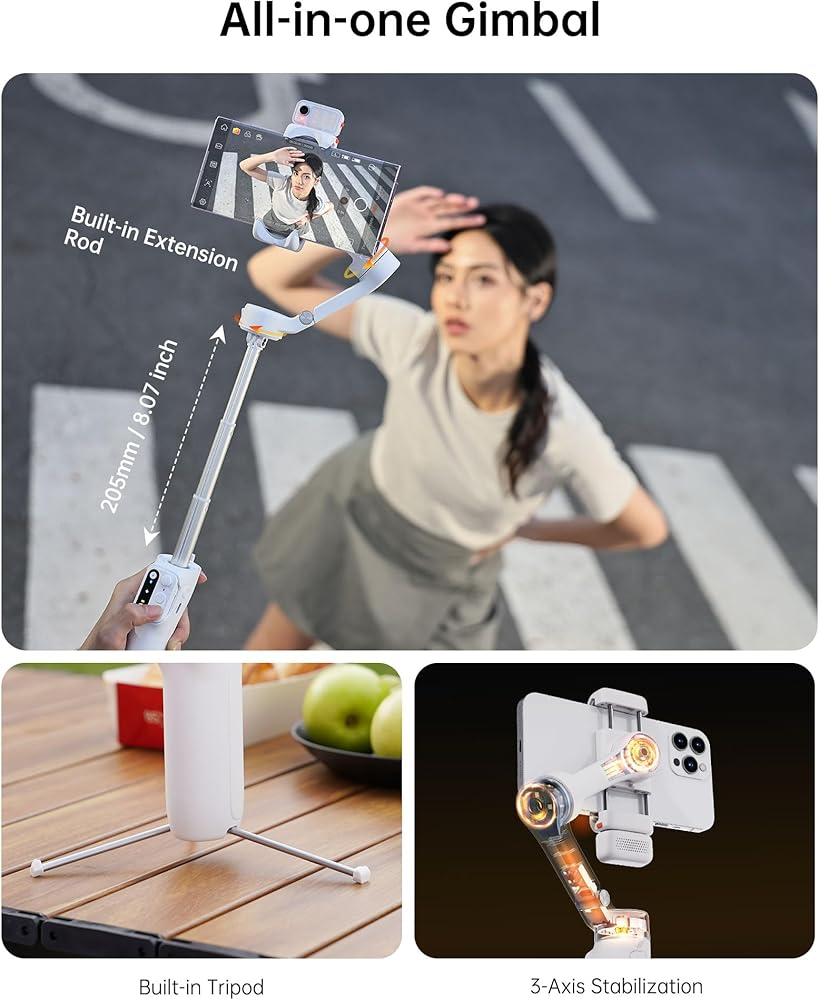 ملائم في أي سيناريو: يمكن لجهاز التحكم عن بعد القابل للفصل التحكم في المثبت بحرية في نطاق 10 أمتار (32.8 قدمًا)، مما يزيد بشكل كبير من مسافة التصوير ويحقق صناعة الأفلام الفردية. يمكن للحامل ثلاثي الأرجل المدمج وعصا السيلفي التي يبلغ حجمها 205 ملم كحد أقصى الوقوف وتمديد كاميرا الهاتف، سواء كنت تلتقط صورة شخصية أو صورة جماعية، بحيث يمكن للجميع أن يكونوا في الصورة.
