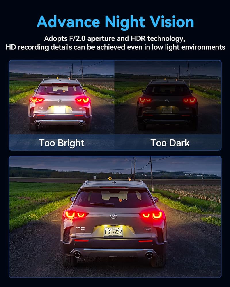 [رؤية ليلية محسنة] تعتمد الكاميرا داخل السيارة فتحة F/2.0، وبصريات 6 طبقات، وتقنية النطاق الديناميكي الواسع و4 أنواع من تقنية تحسين ضوء الأشعة تحت الحمراء لضمان تسجيل فيديو واضح حتى في البيئات ذات الإضاءة الخافتة! حتى تتمكن من القيادة بأمان ليلا أو نهارا. لا تدع الظلام يعيق سلامتك، وسجل كل التفاصيل بوضوح.