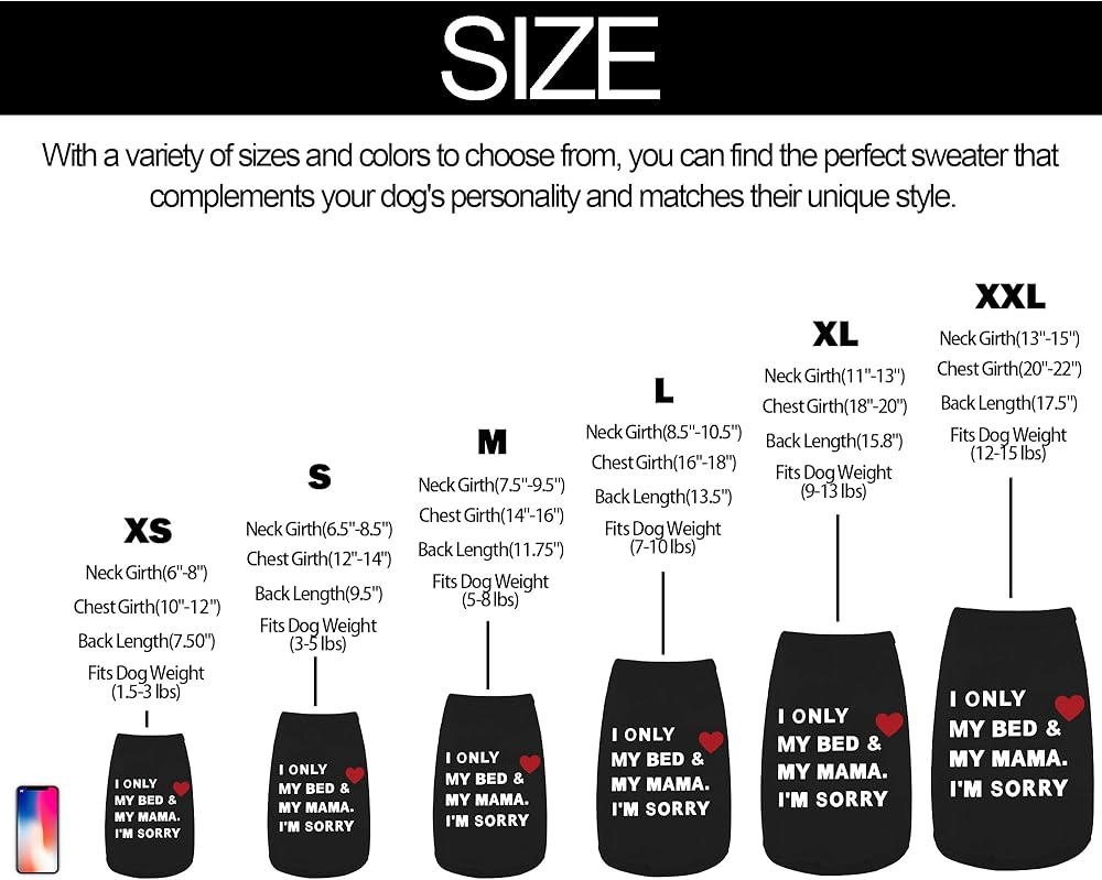 Sizes: The shirt is available in different sizes to fit small to medium-sized dogs. Be sure to measure your dog's chest and neck girth before purchasing to ensure the best fit. The size chart can help guide you in choosing the right size for your pup.
