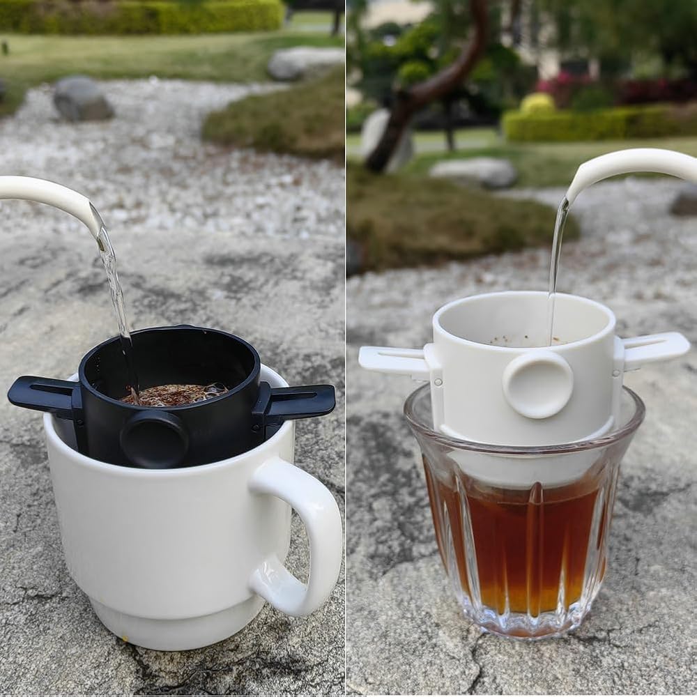 سهلة الاستخدام: فلاتر القهوة لدينا تناسب العديد من فناجين القهوة. كل ما عليك فعله هو فتح الذراع القابل للطي، ووضعه في كوب القهوة الخاص بك، ثم صب مسحوق القهوة أو أوراق الشاي، ثم صب الماء الساخن ببطء، وانتظر بضع دقائق واستمتع بقهوتك أو الشاي.