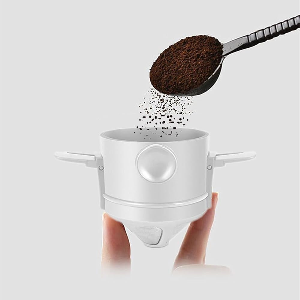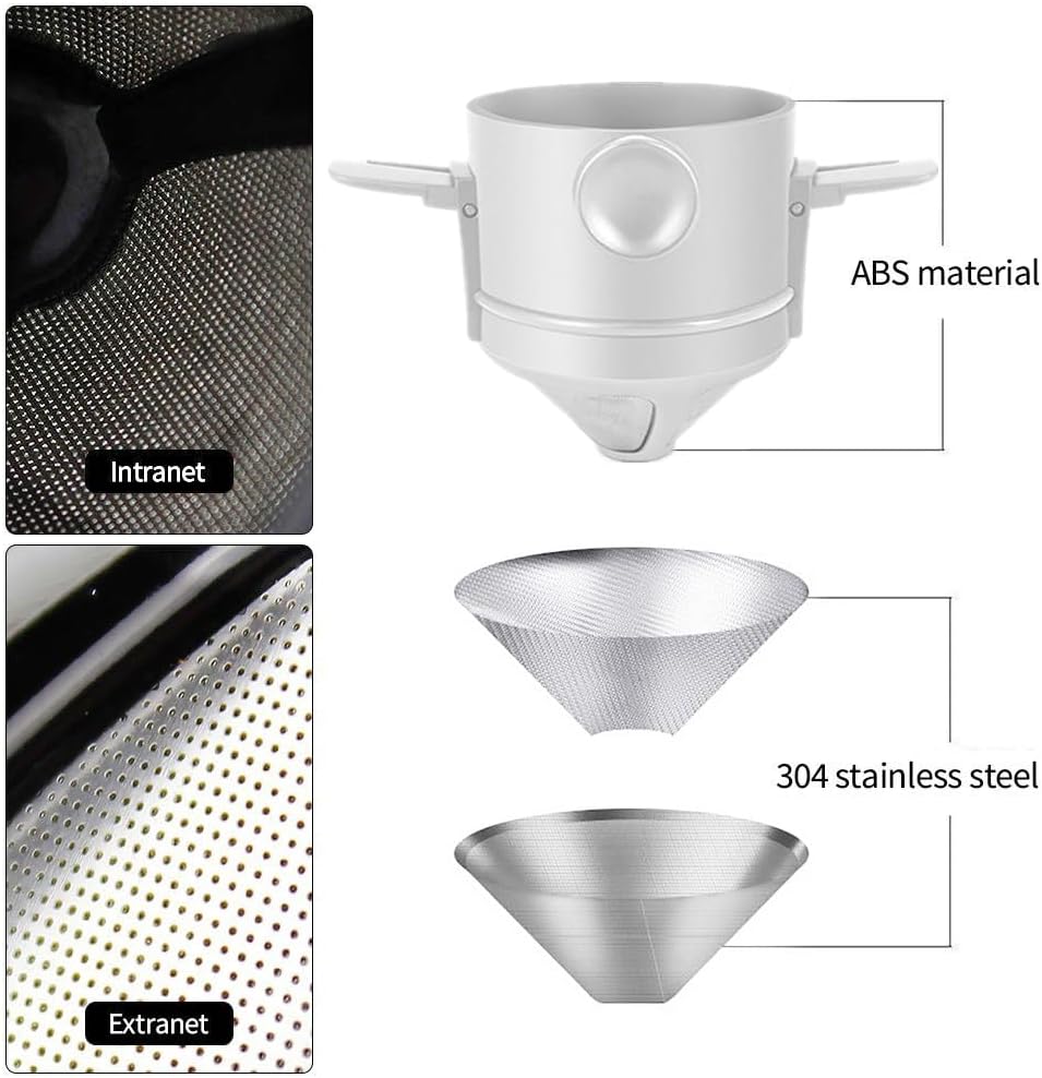 صب فوق منقط القهوة، منقط من الفولاذ المقاوم للصدأ بدون ورق مع مصافي مزدوجة، ماكينة صنع القهوة المحمولة القابلة للطي وقابلة لإعادة الاستخدام للاستخدام في المنزل والمكتب والسفر والخارج. (أبيض)