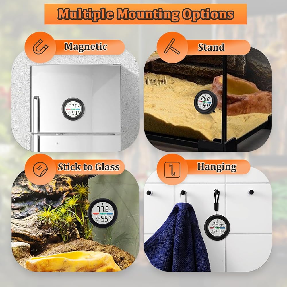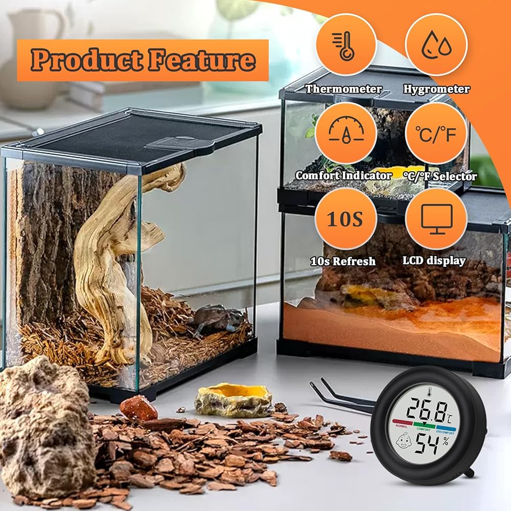ملحقات خزان الزواحف، 2 عبوة من مقياس حرارة خزان التنين الملتحي لقياس الرطوبة للفهد أبو بريص، العنكبوت القافز، الأفعى، أبو بريص، الكرة بايثون، السحلية