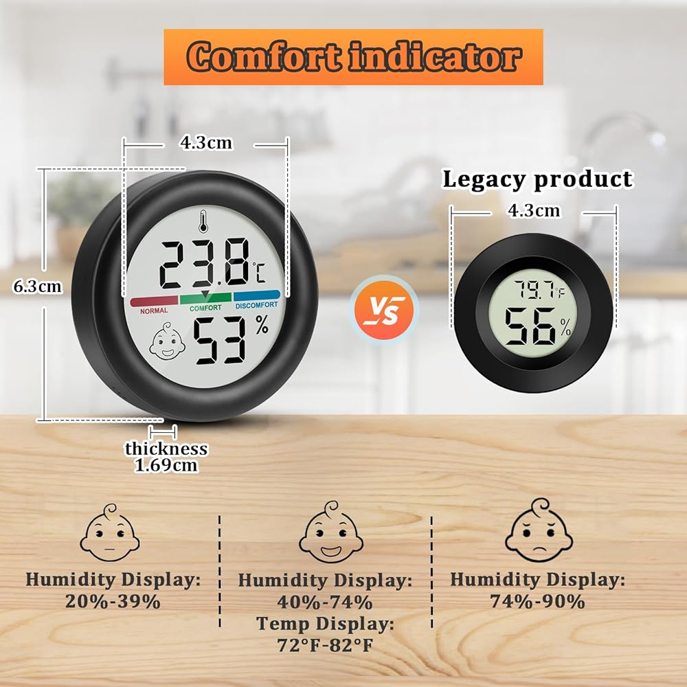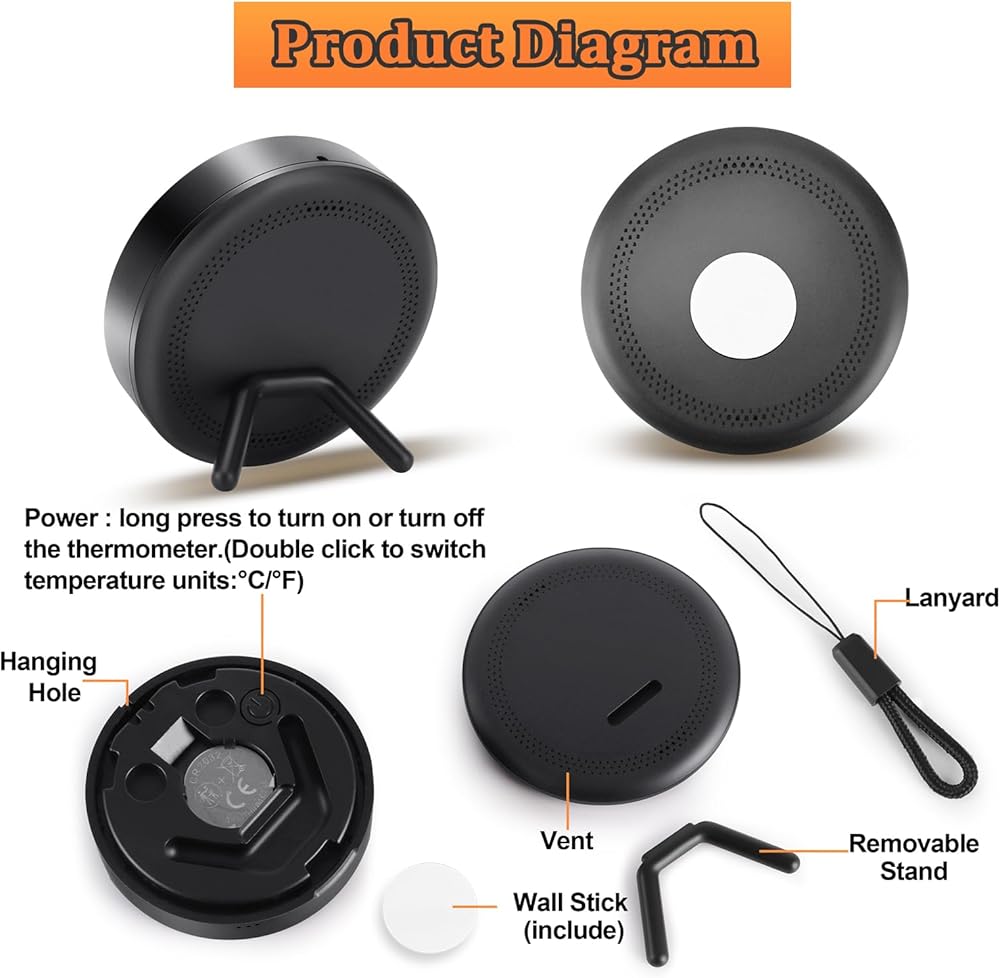 • [ترقية كاملة]: مقياس الحرارة Thlevel هو الإصدار الجديد تمامًا لعام 2024. بالمقارنة مع المنتج القديم، يتميز الإصدار الجديد بقطر 4.3 سم، وشاشة أكبر لسهولة القراءة، ويتضمن مؤشر رطوبة جديدًا مع خيارات تثبيت متنوعة لتثبيته في أي مكان.